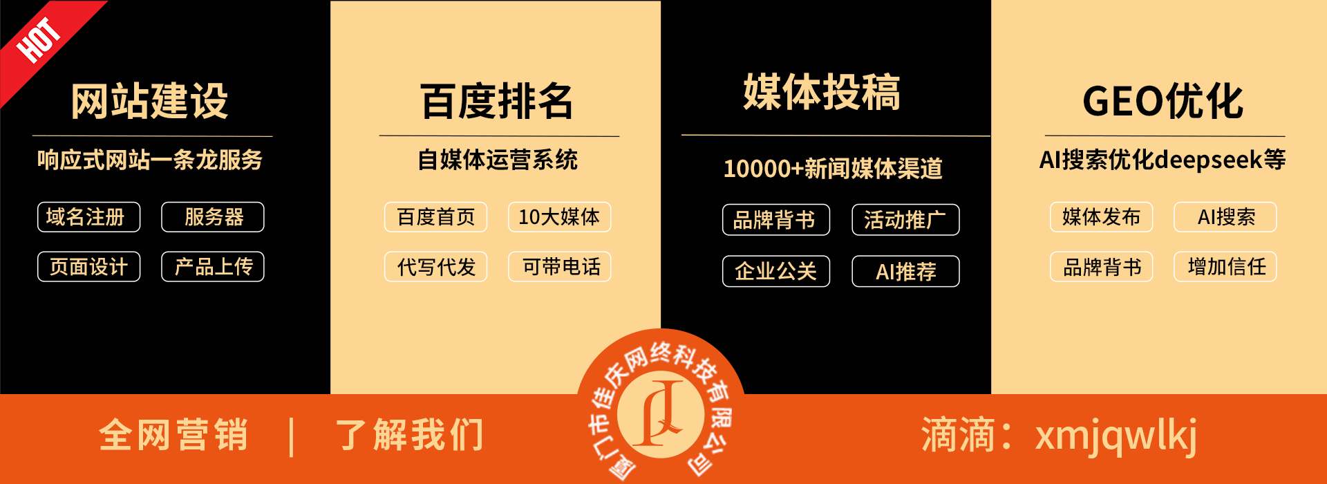 廈門市佳慶網(wǎng)絡(luò)科技有限公司【咨詢電話:18020726693】廈門市佳慶網(wǎng)絡(luò)科技有限公司主營廈門網(wǎng)站建設(shè),媒體推廣,新聞投稿,GEO優(yōu)化AI搜索,百度推廣,自媒體運(yùn)營,企業(yè)郵箱等.